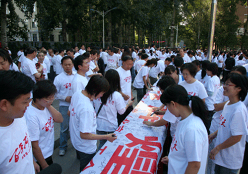 活动开始前,全体教职员工首先在写有“百年矿大,永续辉煌”字样的纪念横幅上庄严地签下了自己的名字,为学校百年华诞助威,这既是每位矿大人投身学校发展的庄严宣誓,也是矿大人团结拼搏的历史见证。