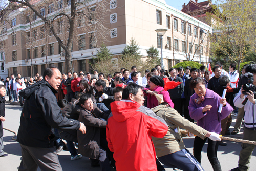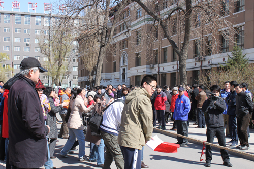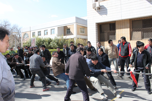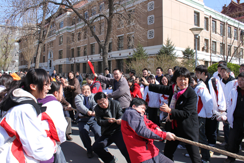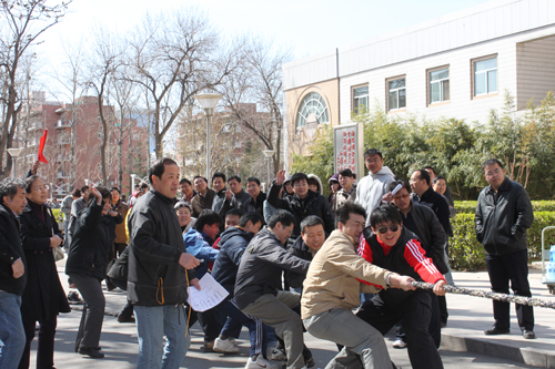 4月13日下午,由校工会组织的“新百年、新矿大”教职工拔河比赛在一号办公楼前举行。比赛由校工会常务副主席晏学民同志主持。