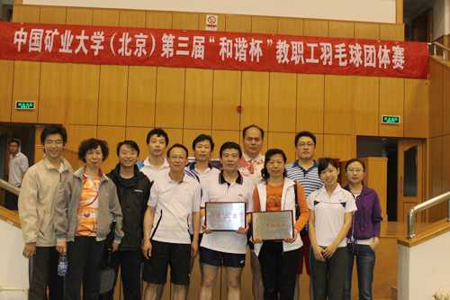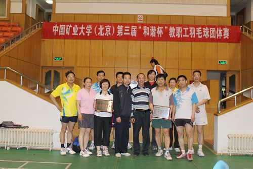 5月11日下午、5月18日下午,中国矿业大学(北京)第三届“和谐杯”教职工羽毛球团体赛在北京语言大学逸夫馆举行。来自12个部门工会的140多名教职工参加了此次比赛。