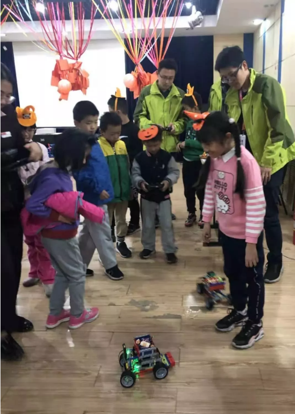 高思STEAM的老师为大家准备了可以运送糖果的小车,小车会为大家全场送糖果,同学们可以体验机器人操控,现场了解机器人的制作。