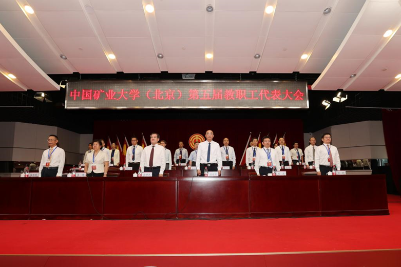 本网讯 9月27日上午,中国矿业大学(北京)第五届教职工代表大会在科技会堂先后举行选举大会、闭幕会。校党委书记徐孝民,校长、党委副书记葛世荣,校党委副书记、纪委书记董晞,副校长刘波、崔希民,校党委副书记安宇,副校长谭凯及主席团其他成员在主席台就座。正式代表154人参加会议。