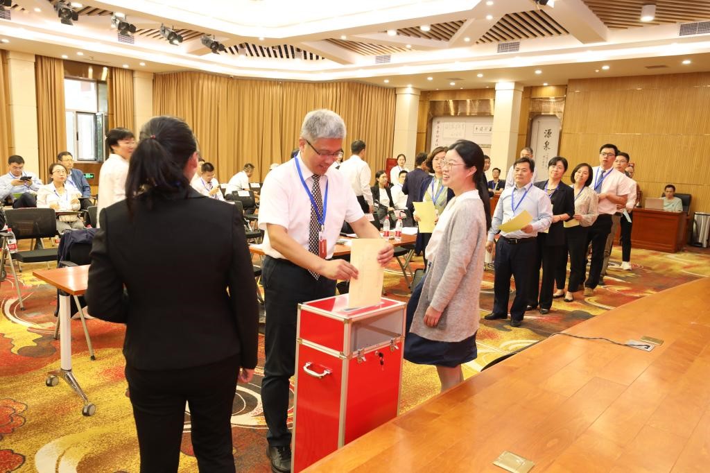 在总监票人邹殿龙主持下,进行投票选举。与会代表认真填写选票,有序投票,选举第五届工会委员会委员、工会经费审查委员会委员。举手投票选举工会青年教职工工作委员会委员。