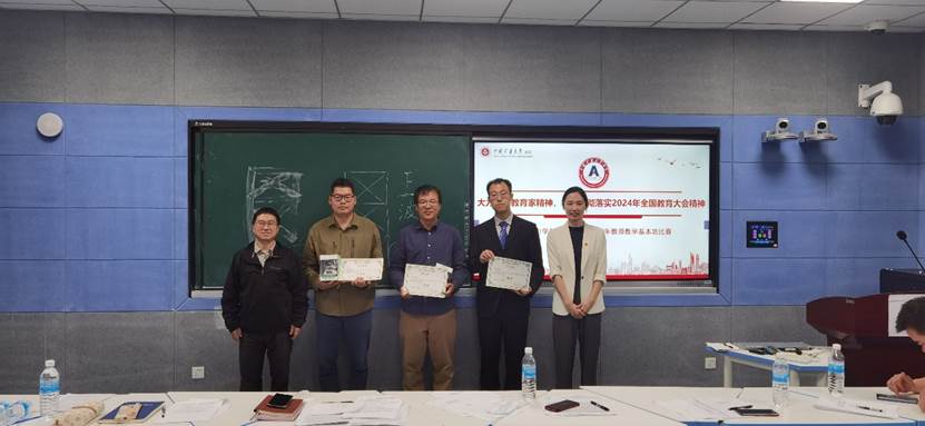 比赛结束后,评委老师从教案设计、课程引入、教学组织、语言教态、时间把控、课堂互动、情绪调动和教学特色等方面进行了现场点评与示范,指出教学过程中的优点和不足。李帅书记宣读比赛结果,姜铮老师、李名老师获得比赛二等奖;李伟捷老师获得比赛一等奖,将代表学院参加学校青年教师教学比赛。李帅书记、左建平院长为获奖教师颁发了获奖证书及纪念品。