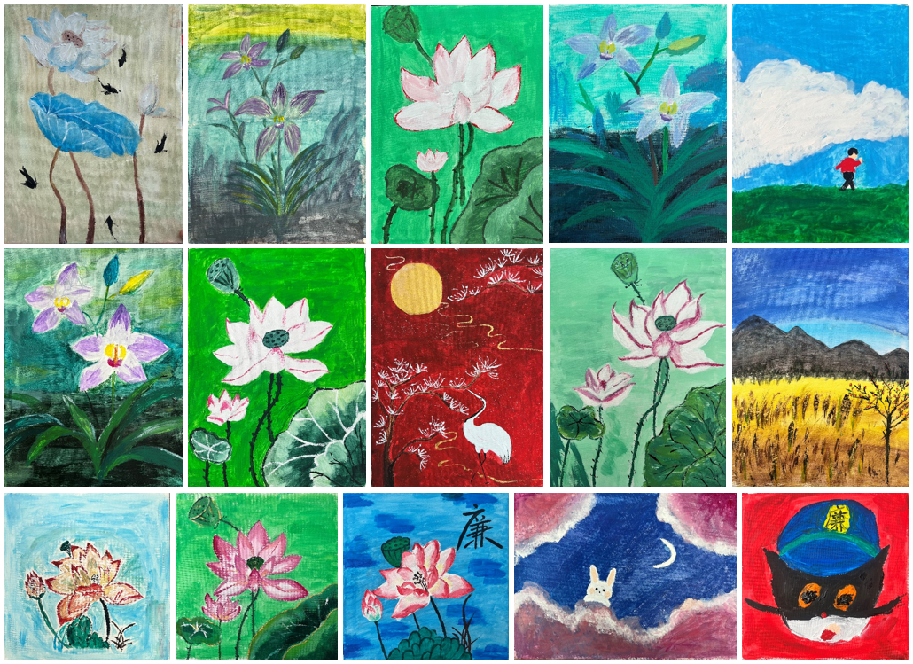 活动现场,专业油画老师对基本绘画技巧进行了讲解,创作过程中,大家围绕廉洁元素展开创作构思,以“青莲”“劲松”“幽兰”等传统廉洁意象为素材,将自己对廉洁的理解融入每一笔色彩之中。有的老师用细腻的笔触描绘出青莲在水中亭亭玉立的姿态,高洁的花朵在画布上绽放,再现“出淤泥而不染”的意境;有的老师笔下勾勒出的墨兰清雅脱俗,展现出“花中君子”的气质与风度;有的老师以遒劲的枝干塑造松树风姿,搭配灵动的鹤,生动诠释了坚韧不拔的品格。经过近两个小时的创作,一幅幅独具匠心的油画作品诞生,每一幅都饱含着老师们对生活的热爱和对廉洁自律精神内涵的独特理解。