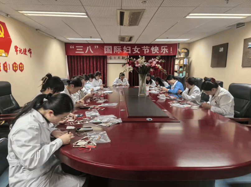 为庆祝第116个“三八”国际妇女节,丰富我院女职工的精神文化生活,让大家在忙碌的工作之余感受非遗传统文化的独特魅力,3月3日校医院分工会精心组织了一场以“非遗宋锦绽芳华·巧手匠心庆三八”为主题的宋锦手工DIY活动。大家欢聚一堂,亲手制作宋锦风铃与冰箱贴,共度了一个温馨、雅致的节日。